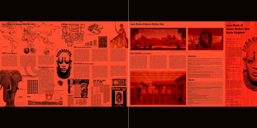 This graduate seminar (paired with the “Drift” thesis studio) was themed around ideas of repatriation (giving/taking), possession and dispossession (power/resistance) through a spatial exploration of the politics of staying in place. Students investigated (first individually, then collectively) a single item from a museum and its collection and the related placements and displacements that occur when an artefact (and its history, location/dislocation, place/non-place, curation/display, enchantments/dis-enchantments) is tethered to an old/new location. The seminar was supplemented with guest lecturers from Canada, the United States, South Africa and the United Kingdom. Students “stole” as Fred Moten and Stefano Harvey note, in order to ground “new forms of assembly.” Student work featured here includes Andrea Macintosh, Lorraine Okungbowa, Melissa Fink, Chloe Cooke, Alice Won, Saman Soltani, Rudo Mpisaunga, Cristina Hoang and Anthony Youssef.