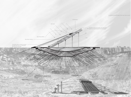 This graduate options studio explored the fraught landscape of the Naqab/Negev Desert in Palestine, with a critical foregrounding and emphasis that the desert is never empty, barren, or uninhabited. The studio looked at the contested water and hydrological politics of Palestine, and used the work of Malkit Shoshan, Michael Sorkin, Fazal Sheikh and Eyal Weizman as conceptual prompts for studio projects. A 6 week studio, it asked students to engage with the hydro-politics of the landscape through a series of critical mapping, chimera-drawing, plaster-casting and speculative design exercises. Students featured in the slideshow below include Melanie Li, Paola Vega, Kate Coulthart, Nick Choi and Stephanie Dawn Murray